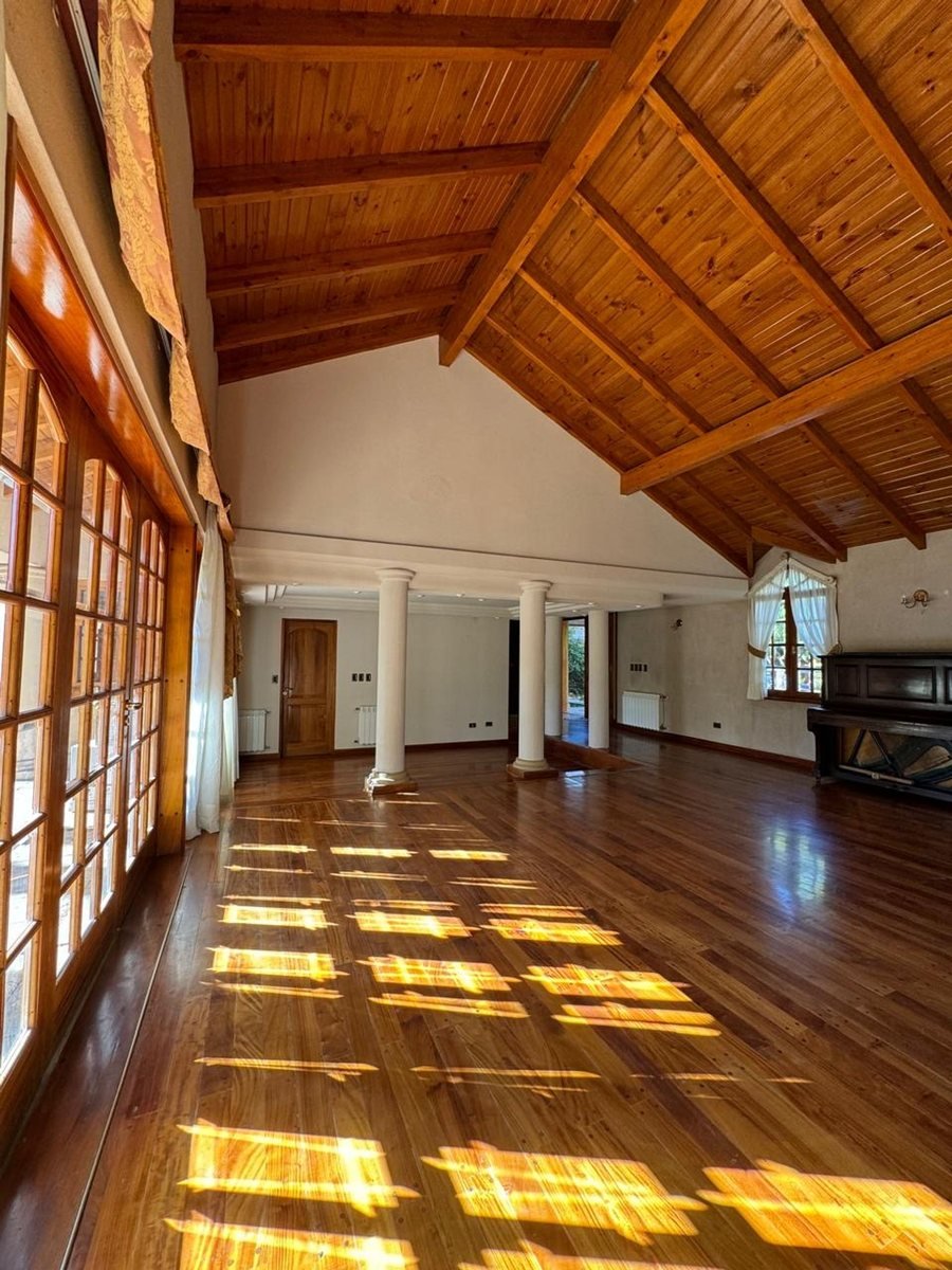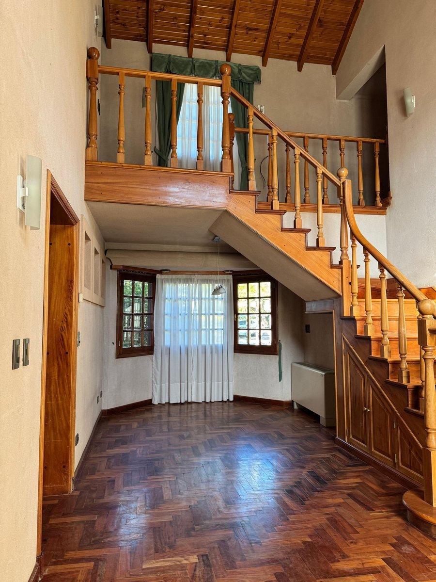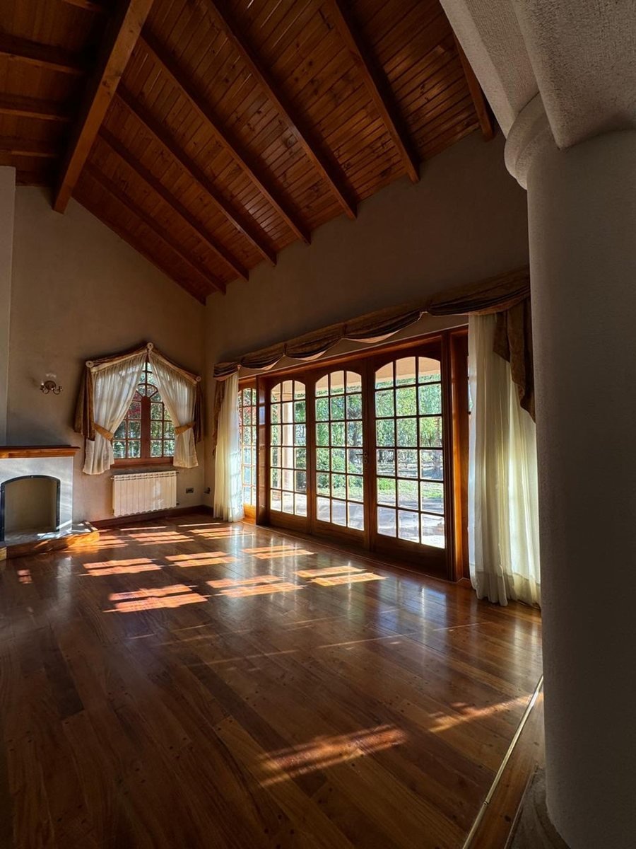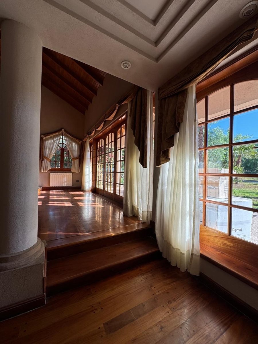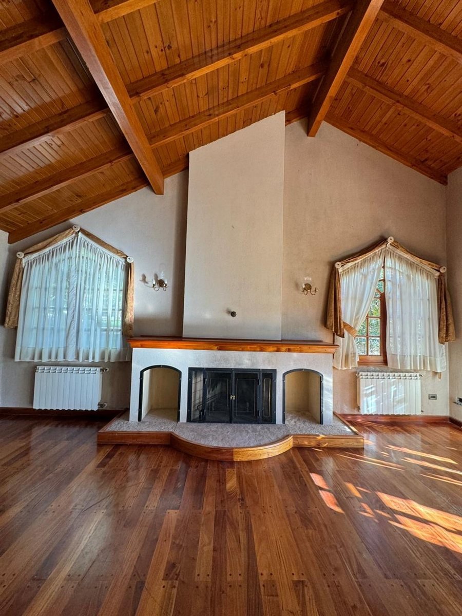 Al ingresar tenemos un hall de recepción y a mano izquierda el living principal de gran dimensión con un hermoso hogar a leña para los inviernos fríos y un desnivel que puede ser utilizado de varias maneras, ademas las columnas en el living dan un look de categoría junto a sus ventanales con vista al jardín. La cocina es espaciosa con todo lo necesario para tu goce culinario, también cuenta con una habitación despensa para guardado de mercadería, etc.