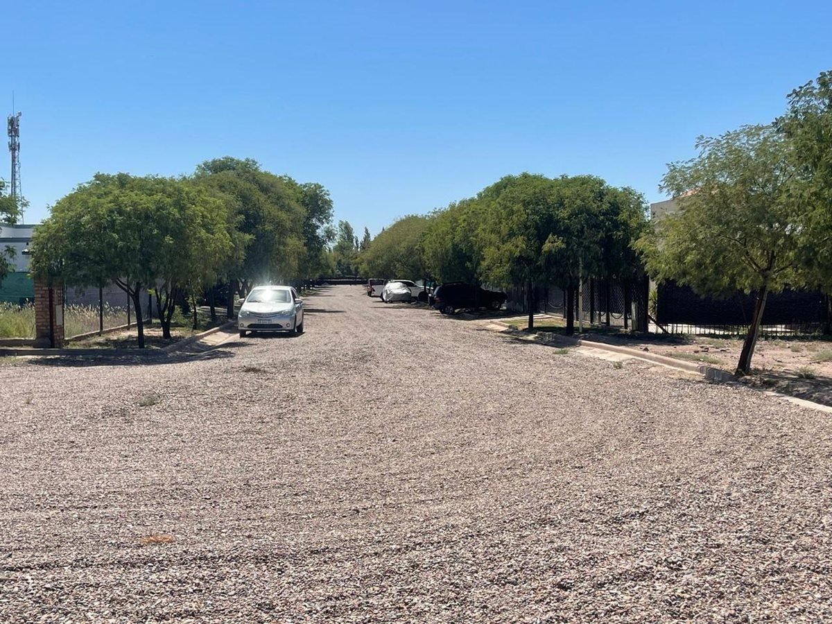 Consta de una superficie de 1238 m2 aprox, frente 14 ms aprox. con orientación oeste. Totalmente cerrado con tela romboidal.