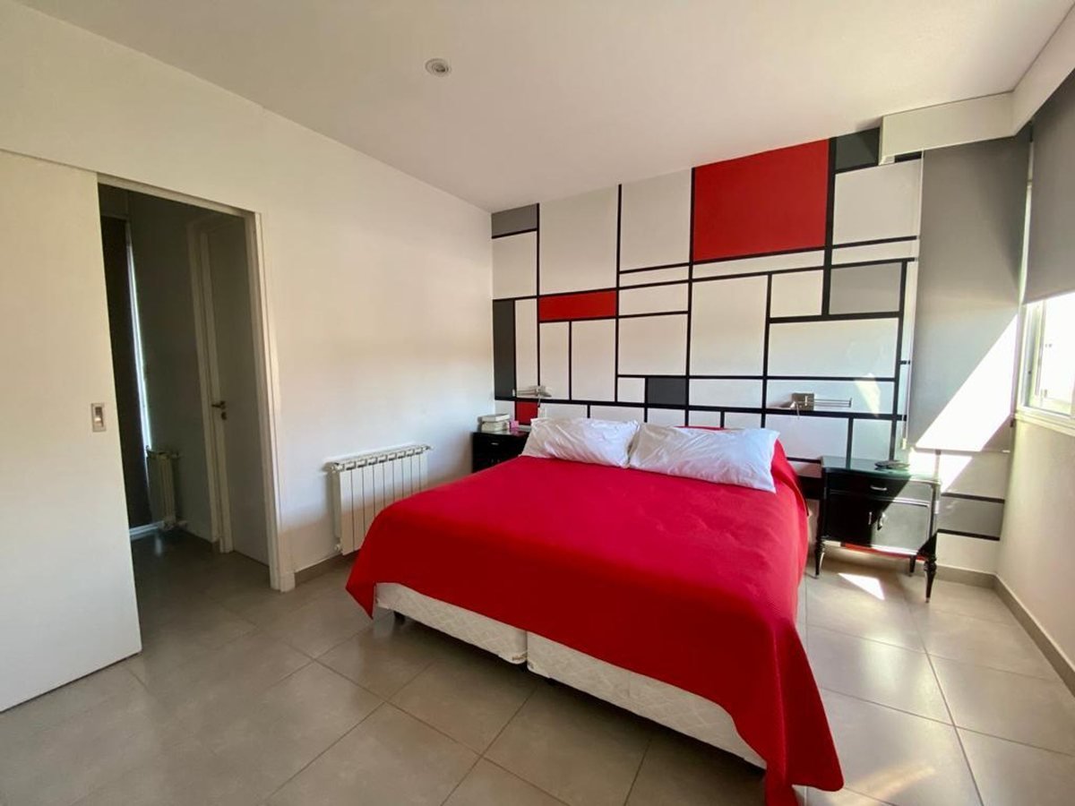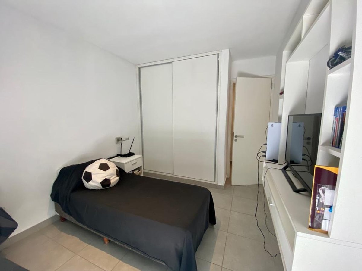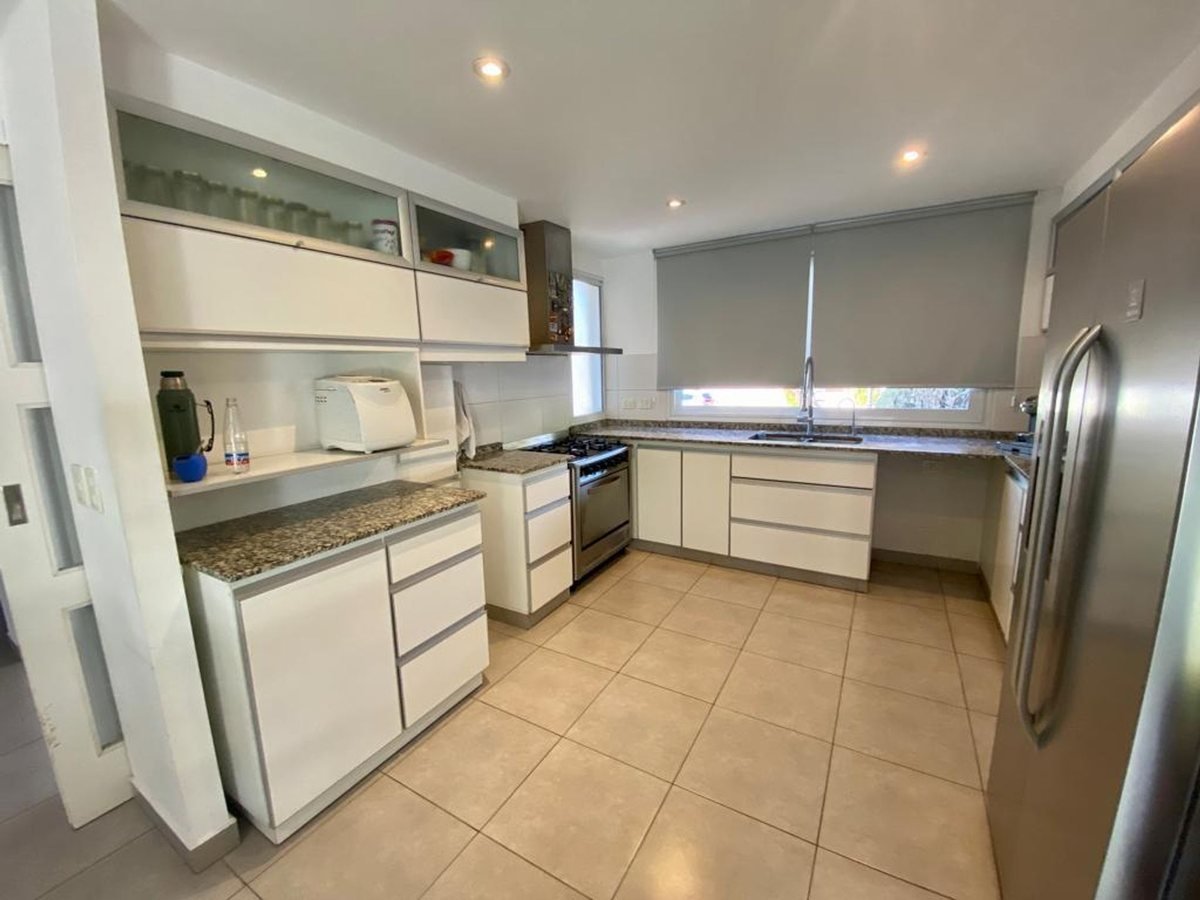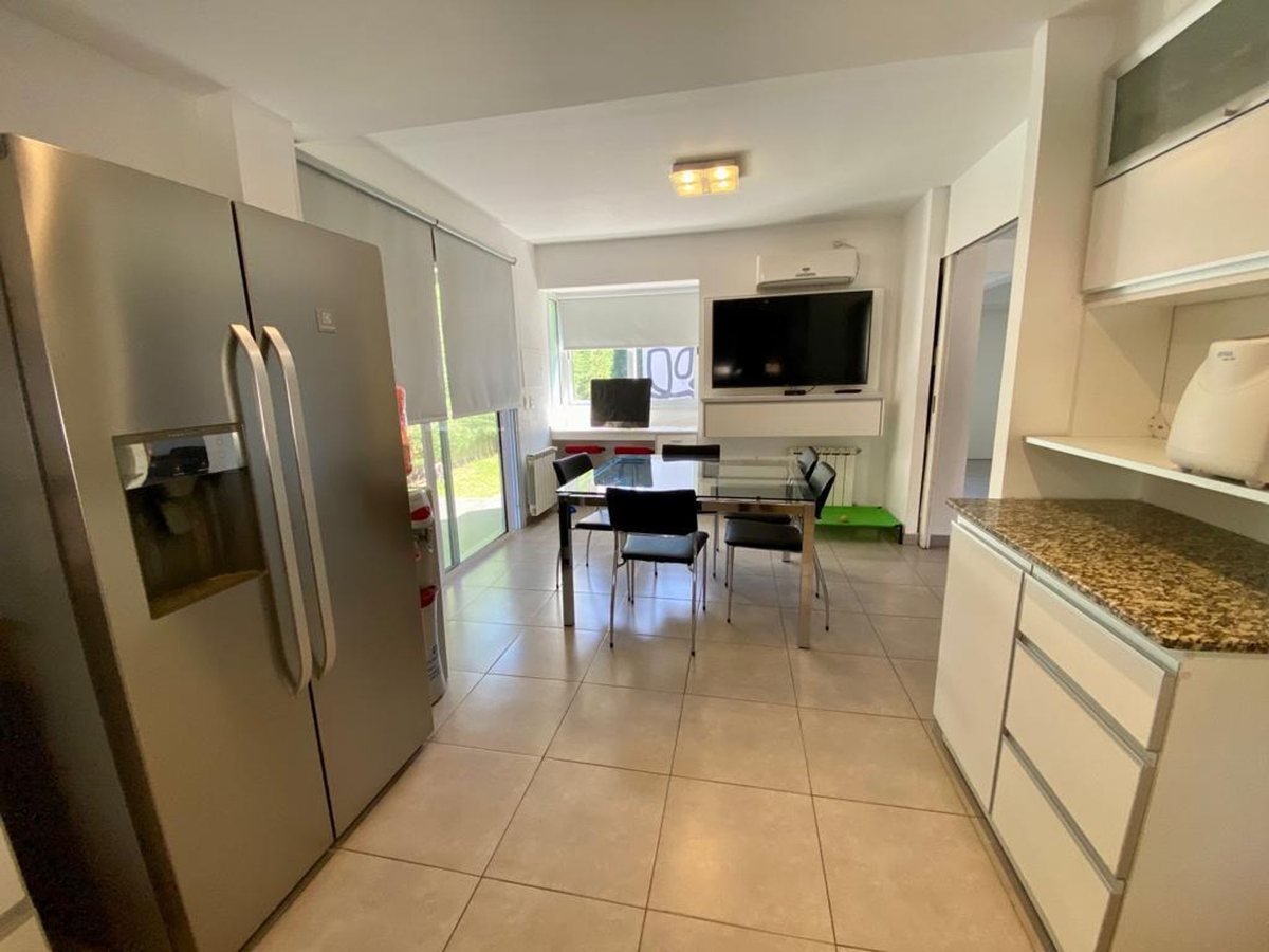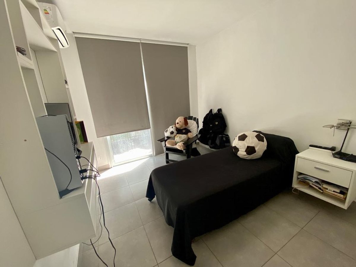Tiene cochera y pequeño jardín con churrasquera.