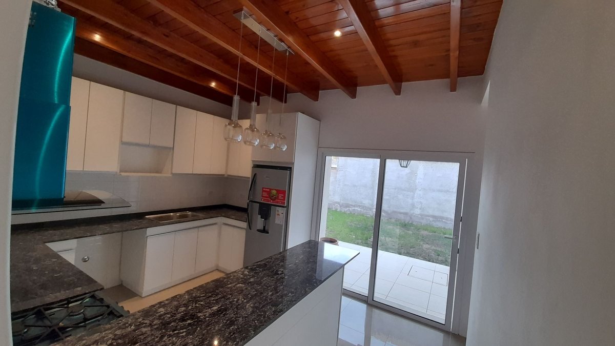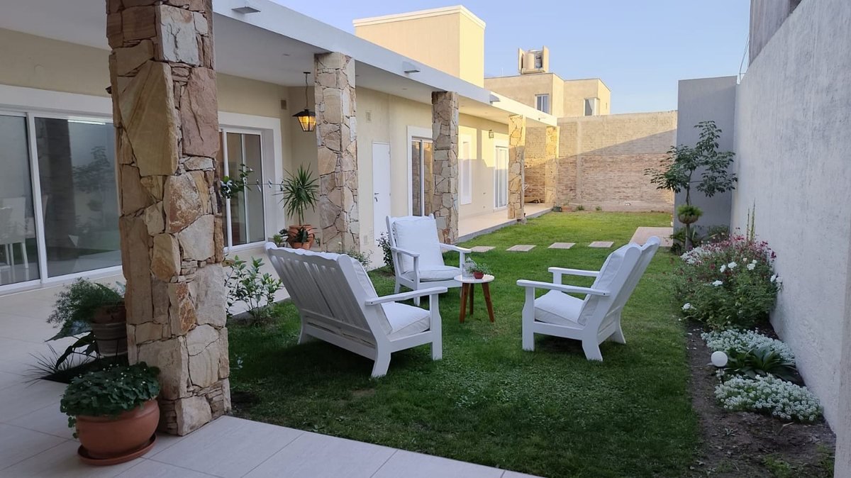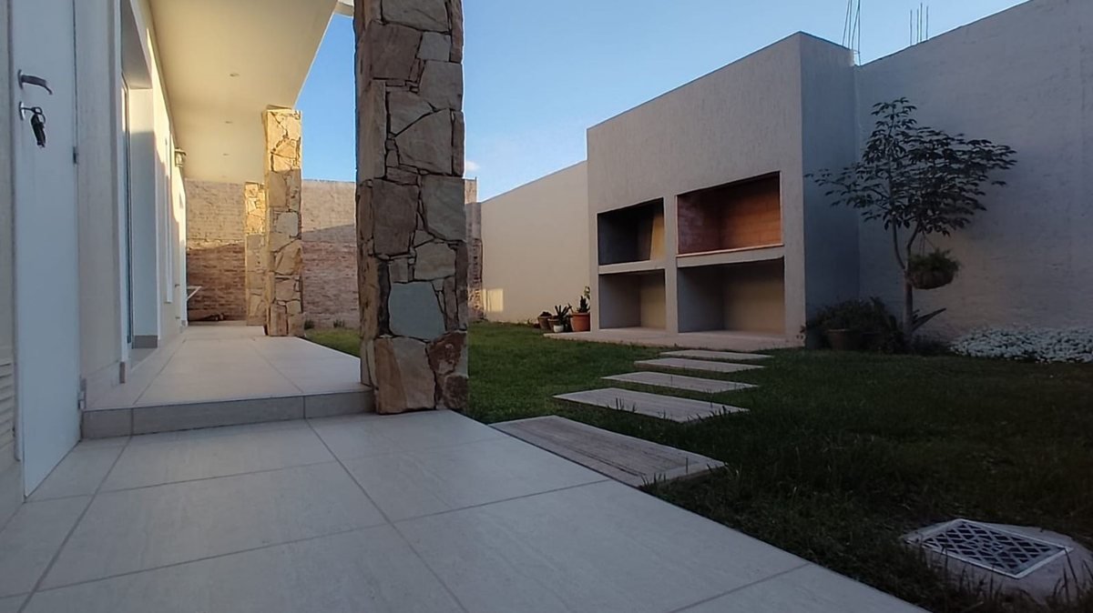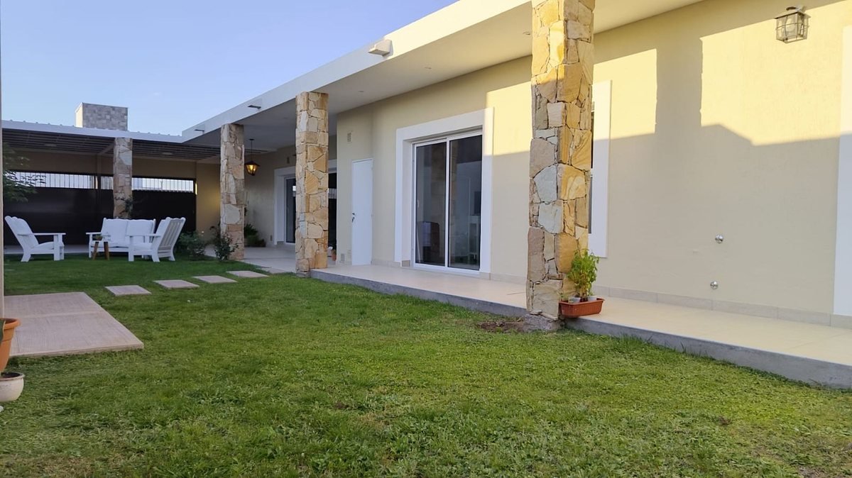 Se trata de una casa construida en planta baja construcción tradicional, se destaca la calidad de los materiales y diseño de la propiedad. Priman los materiales como piedra, ventanas doble vidrio, colores neutros, amoblamientos de cocina, revestimientos en paredes , espacio verde y apertura al jardín.